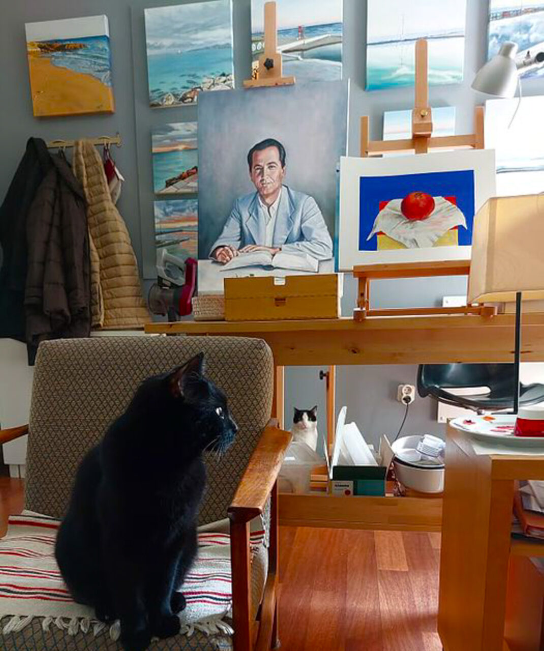 Ξεκίνησα με τοπία από το Παλαιό Φάληρο, την περιοχή όπου ζω, και με νεκρές φύσεις. Με συγκινεί ιδιαίτερα το φως — η στιγμή που αναδεικνύει και δίνει ουσία στις μορφές. Κάθε πίνακας γίνεται μνημείο μιας μοναδικής στιγμής: ένα κύμα, ένα σύννεφο, ένα κοπάδι πουλιών, μια αντανάκλαση στο νερό. Ασχολούμαι επίσης με πορτρέτα και ανθρώπινες μορφές, ξεκινώντας από τα πρόσωπα της οικογένειάς μου. Η απεικόνιση αγαπημένων ανθρώπων —είτε μακριά είτε απόντων— είναι για μένα μια βαθιά διαδικασία ενδοσκόπησης και σύνδεσης.